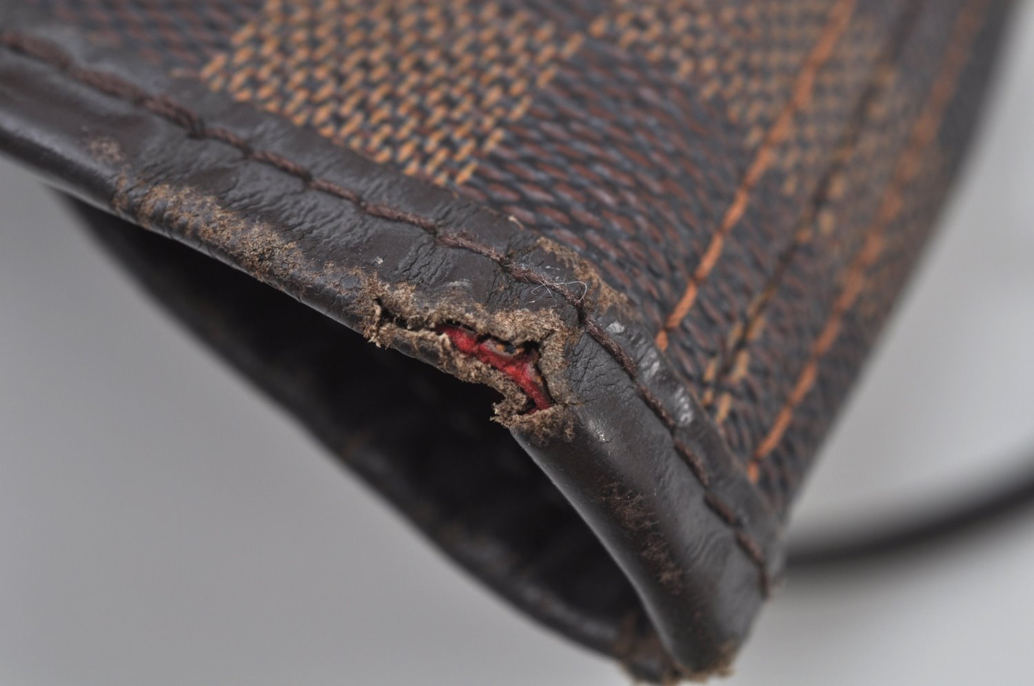 [Others] Leather strap has damage and self repaired with glue.Inside Pocket fabric is peeling off. One partt of Shoulder strap base is a little torn. Inside metal parts is lost.